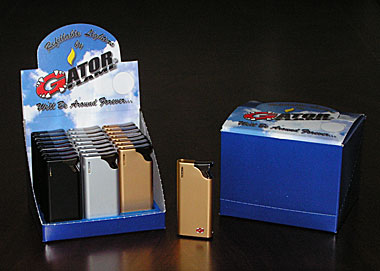 - Each display box includes 24 lighters, with 3 color choices in each box - (8) Black, (8) Silver and (8) Gold.